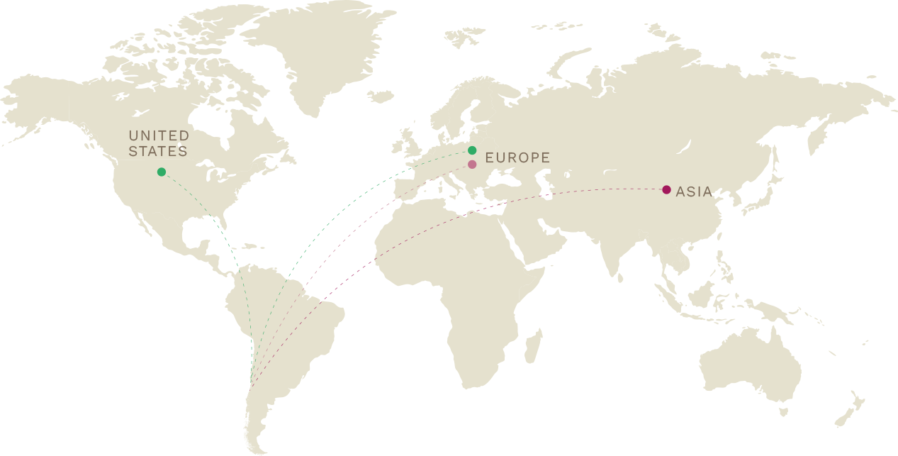 Our fruit travels beyond the mountain ranges. It arrives fresh and full of life in more than 15 countries, conquering the most demanding markets: