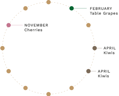 In February, table grapes —ARRA 29 and ARRA 15— sweeten the calendar.